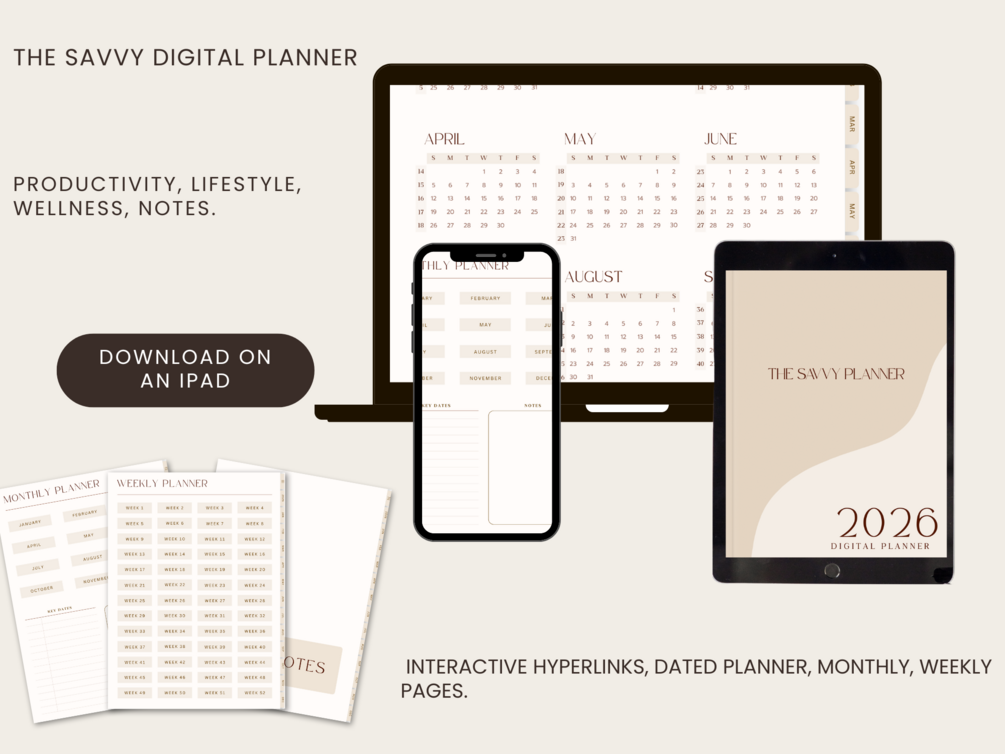 The Savvy 2026 Digital Planner – Simple, Aesthetic & Fully Functional